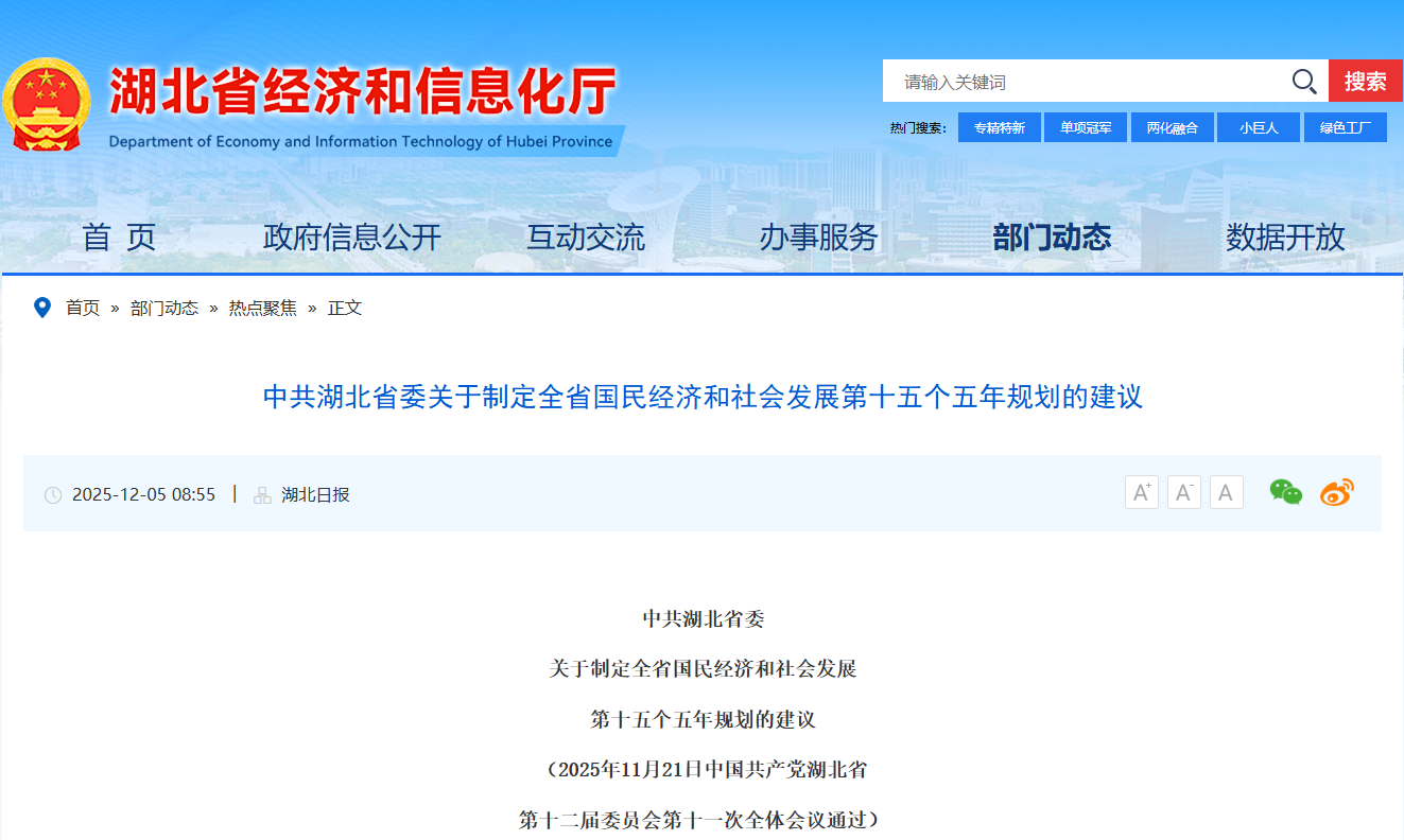 湖北省發布“十五五”規劃建議